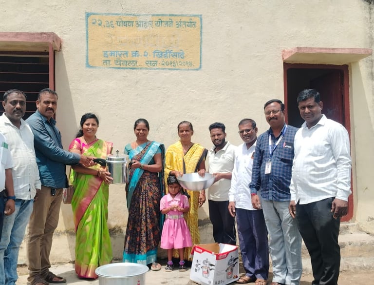 अंगणवाडी केंद्र यांना पोषण आहार शिजवणे कामी साहित्य वाटप करून कुपोषण निर्मूलनाचा ग्रामपंचायतीकडून प्रयत्न करण्यात आला.