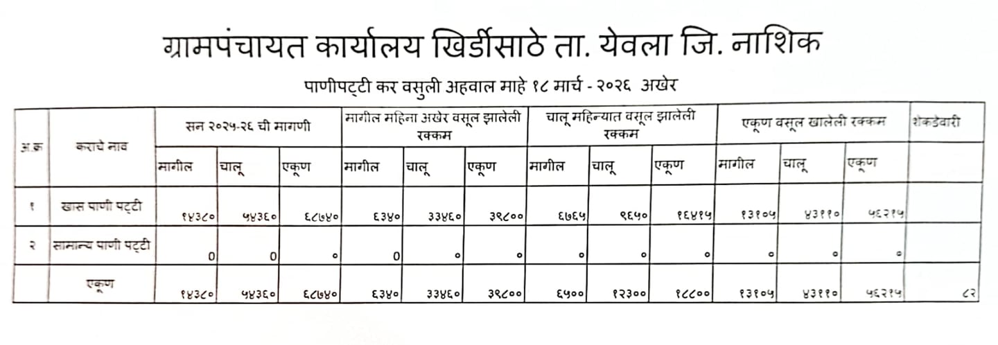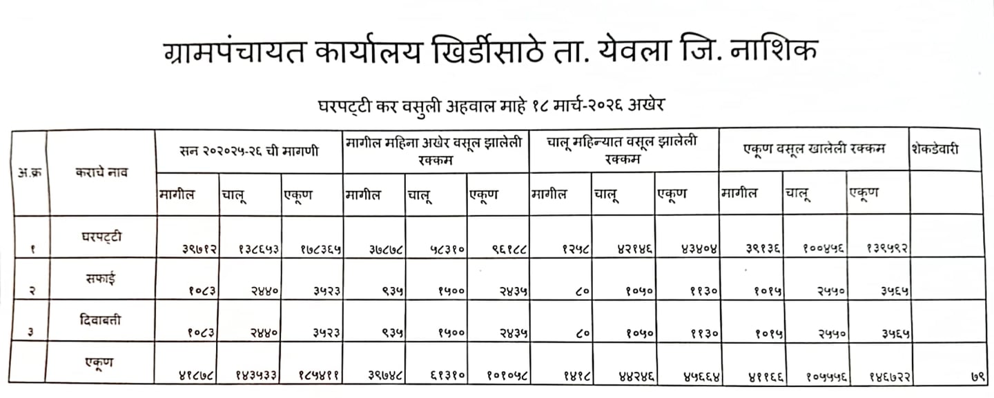 ग्रामपंचायत खिर्डीसाठे यांना करातून मिळणारे उत्पन्न
